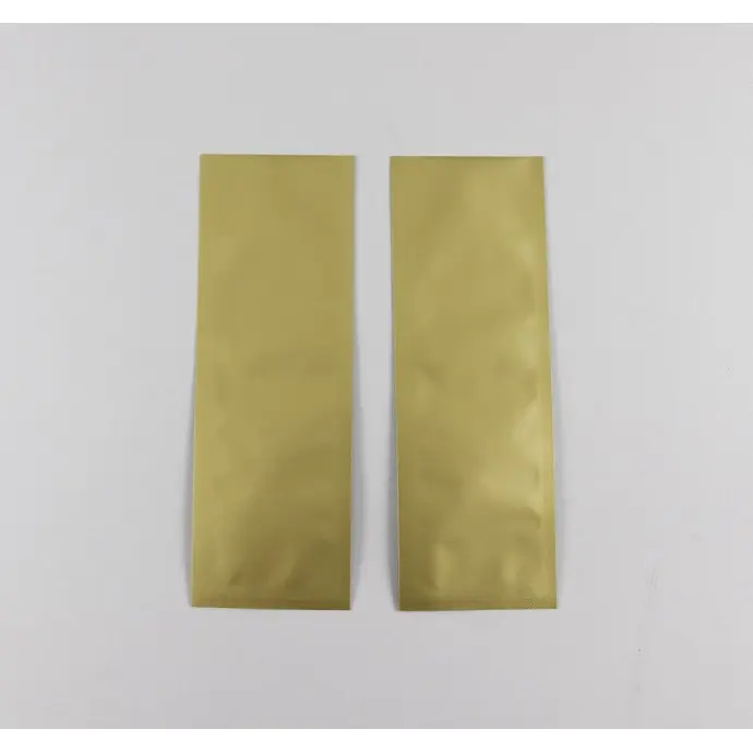 2.25” x 6.5” OD Matte Gold MylarFoil Pouch; 3 side seal; 0.25" side seals; No Tear Notch