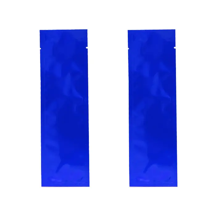 2.5" x 8.25" O.D PAKVF4C Blue PMS 2945C 3 side seal bag with tear notch 1.0" from open end