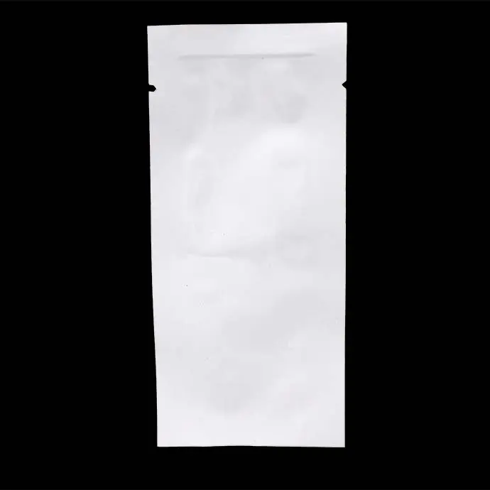 2.5" x 5.5" O.D. PAKVF4W White 3 side seal pouch with tear notch and flush cut*
