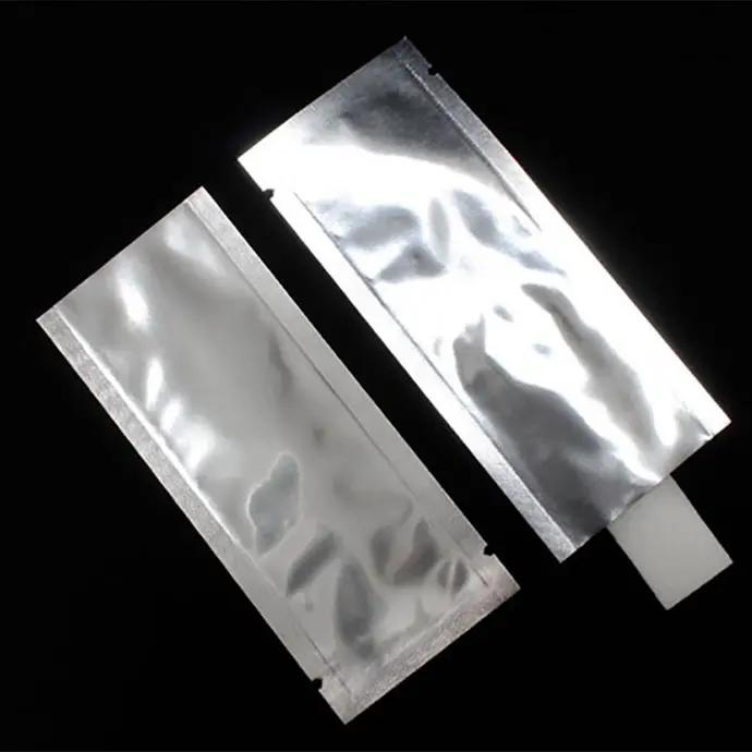 Material: This pouch is made from PAKVF4, a lamination of film foil and polyethylene that has a wide range of uses where a high barrier film is needed. PAKVF4’s high barrier properties make it ideal for packaging hygroscopic items and products susceptible to corrosion. It is frequently used in food and medical device packaging, where very low oxygen levels are required.