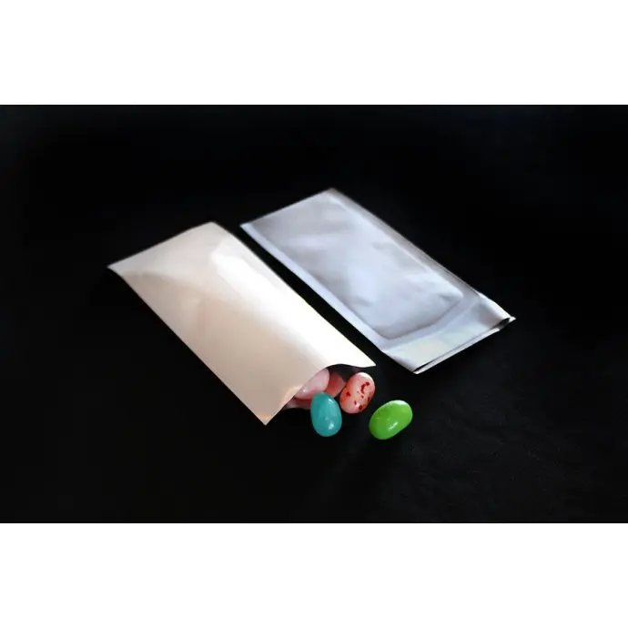 The peelable Mylar pouches are semi tamper evident because the adhesive edge cannot be reclosed, making them ideal for single-use applications.