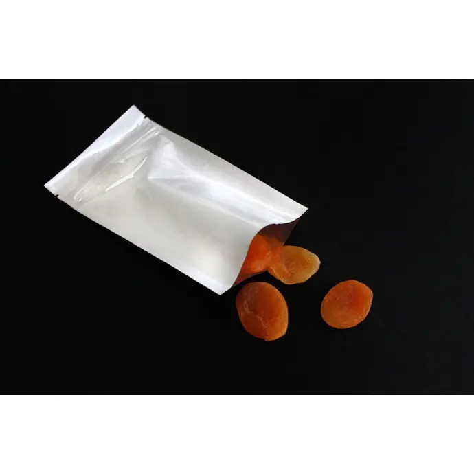 3.5" x 6.5" OD White MylarFoil pouch with tamper evident ZipSeal and tear notch