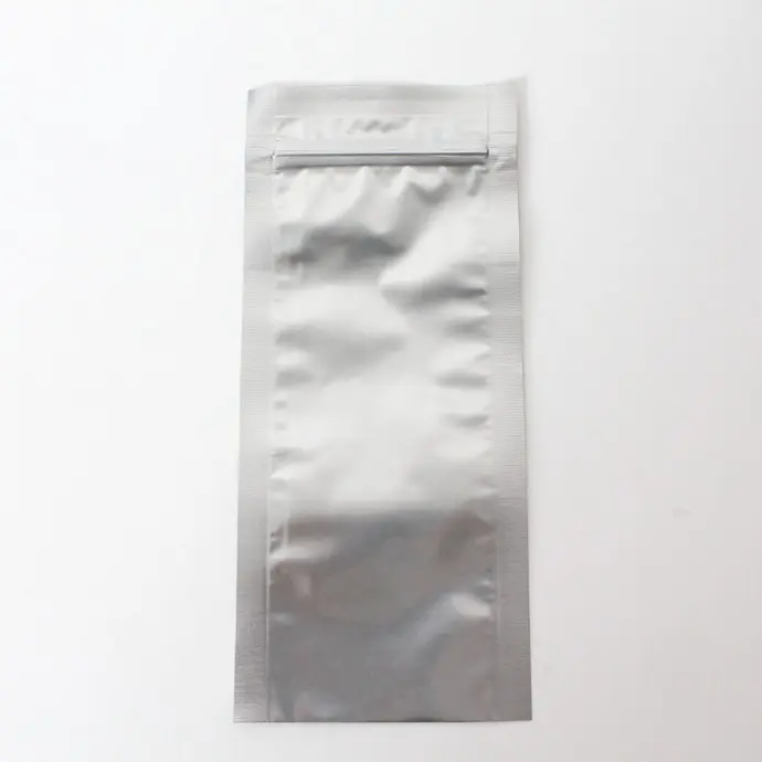 These cut-to-open zipper pouches feature high barrier protection against light, moisture, oxygen, and scents (smell-proof when packaged correctly). Once sealed, the approximate inner dimensions are 2.75” x 6.75”. They may be ordered in stock silver or custom printed. IMPAK offers both custom print and labeling services.