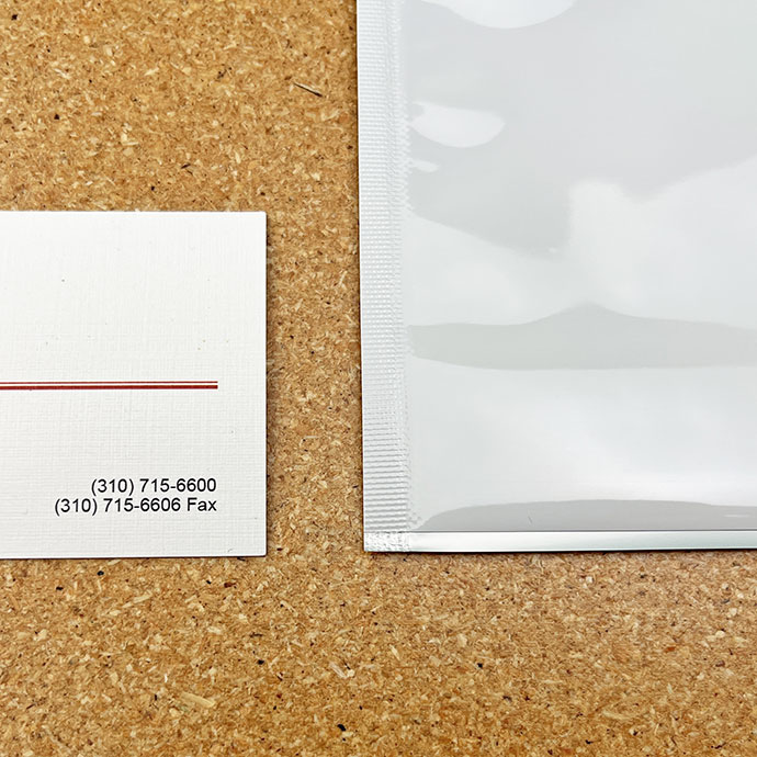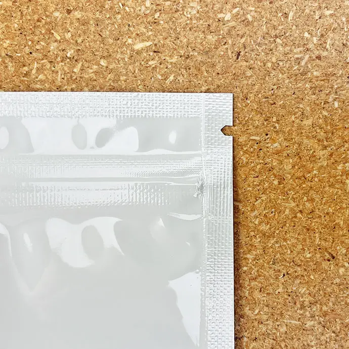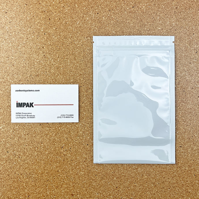 4.25" x 6.6" OD PAKVF4W White MylarFoil pouch with tamper evident ZipSeal, tear notch, and 0.125" load lip