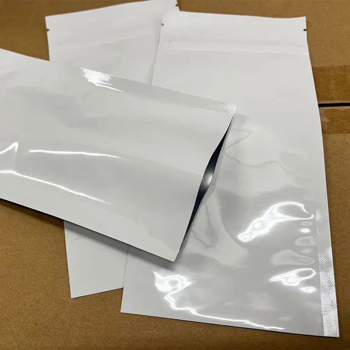 Material: This pouch is made from PAKVF4W, a lamination of film foil and polyethylene which has a wide range of uses where a high barrier film is needed with a low WVTR. It is ideal for packaging of hygroscopic items and products susceptible to corrosion, and in food or medical device packaging, where very low oxygen levels are required.