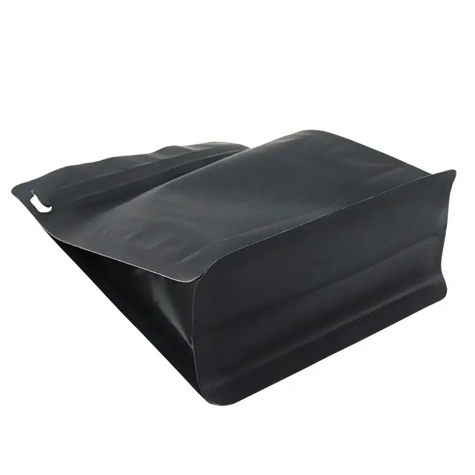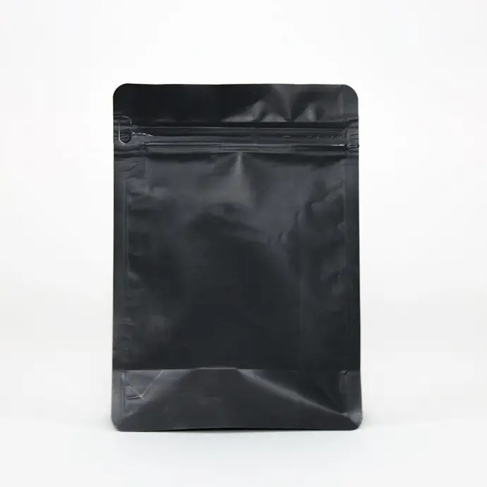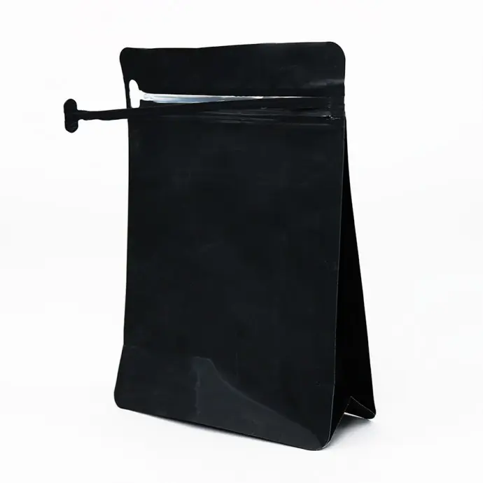 6.0" (w) x 8.25" (h) x 2.875" (d) PAKVF5M Matte Black Square Box Bottom Pouch with Side Gusset and Pull Tab Zipper.