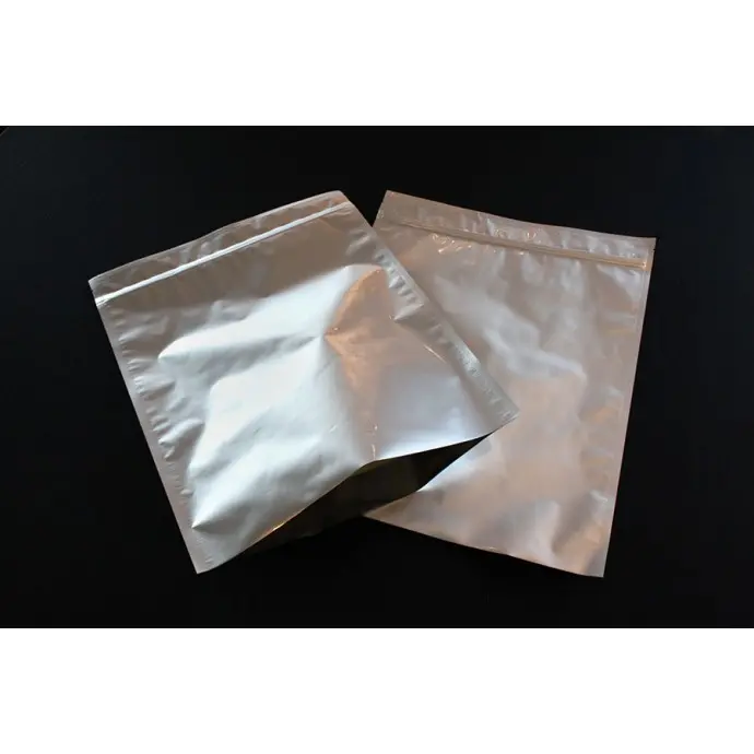 8" x 12" OD PAKVF4 Silver MylarFoil pouch with tamper evident ZipSeal and tear notch