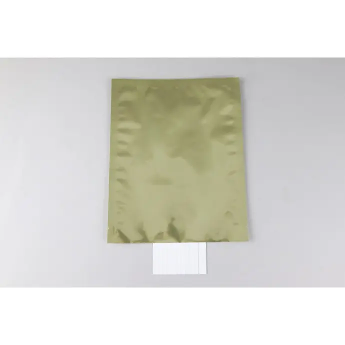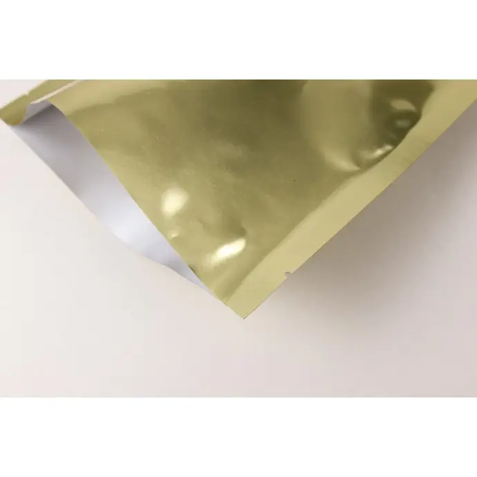 8.0" x 10" OD PAKVF4C Gold Pouch with Tear Notch 0.75" from Open End and Flush Cut*