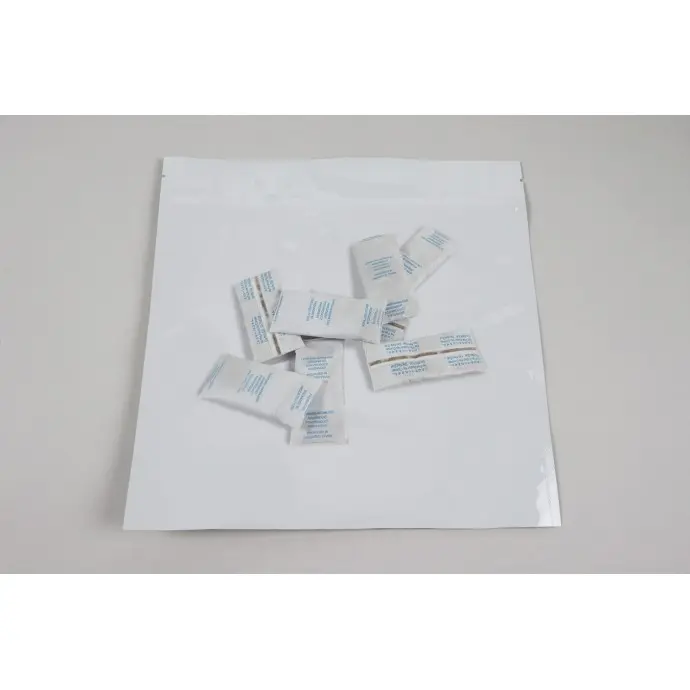 For packaging hygroscopic products, IMPAK recommends including a packet of molecular sieve desiccant; for this size pouch, a 3.5 g Molecular Sieve Packet works well to keep contents protected from moisture.