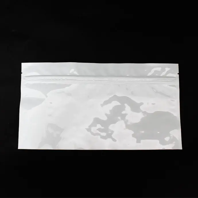 11" x 6" OD White MylarFoil pouch with tamper evident ZipSealand tear notch