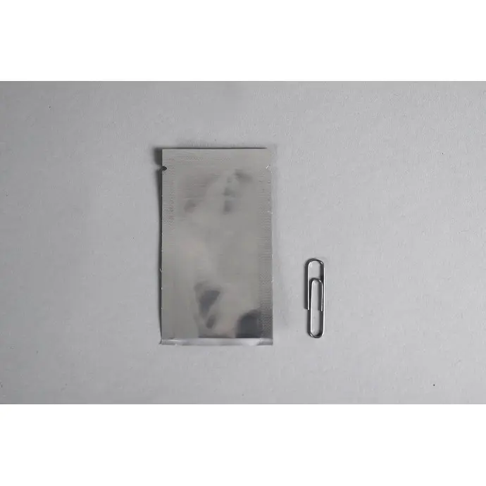 1.75" x 3.25" OD Silver MylarFoil MiniPouch with 0.125" Load Lip and Tear Notch Located 0.275" from Sealed End; 1,000 pouches per pack