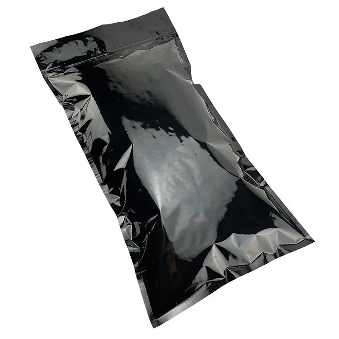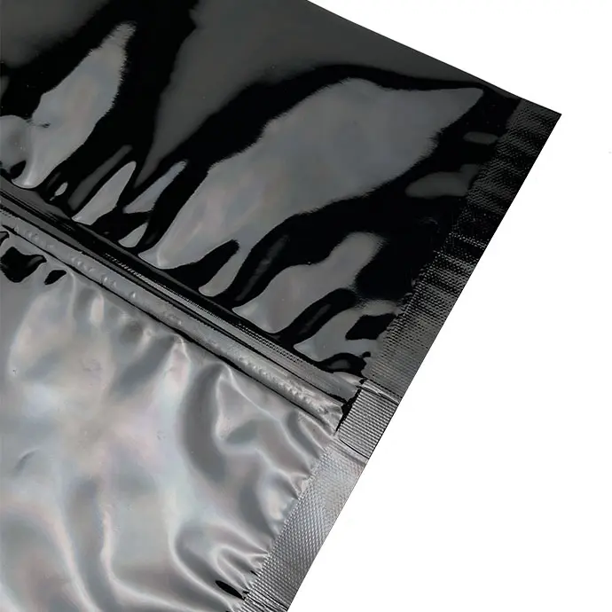 These large OZE (open zipper end) pouches are designed for secure packaging of active pharmaceutical ingredients (APIs). The sealant layer of this custom film lamination is odorless, non-toxic, and well-suited for sterile / anti-microbial applications. The pouches feature 10 mm / 0.394" side seals and a wide flange, i.e., a wider-than-usual sealing area above the zipper, allowing the pouch to be easily heat-sealed without compromising the resealable zipper area.