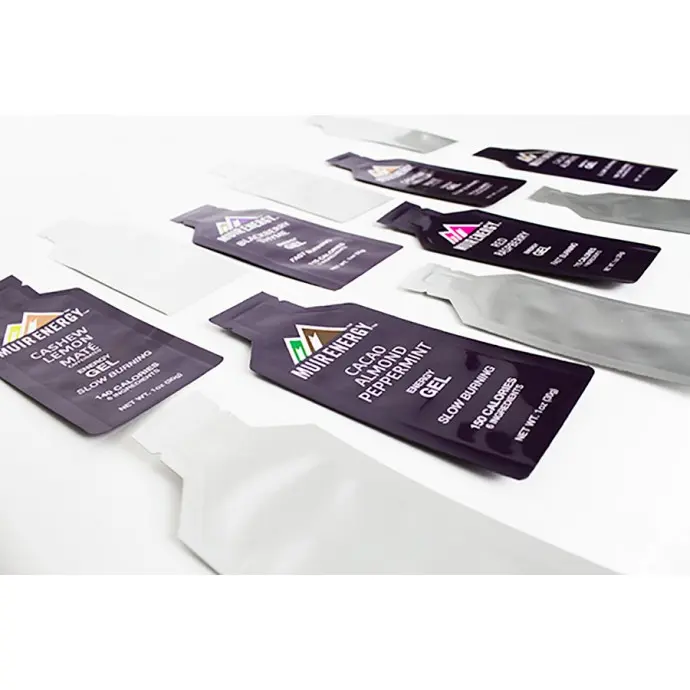 - Flexibility with label application: All flavors use the same package, and are differentiated by their labels. These dispenser tip squeeze packets allow Muir Energy to test many different flavors using the same package; if a flavor is discontinued, no packages go to waste. (Figure 2)