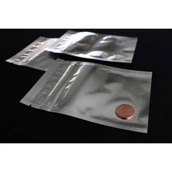 3.75" x 5.25" OD PAKVF3.5M Metalized pouch with tamper evident ZipSeal and tear notch