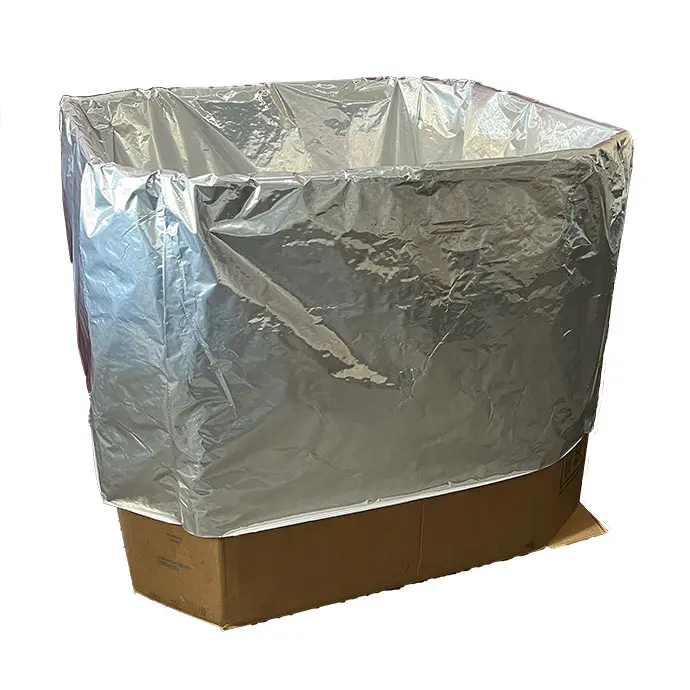 A protective square bottom bag shaped to fit standard pallets / gaylords / octabins / bulk boxes, and was engineered for use with a wide variety of materials and industries including industrial resins, foods, chemicals/adhesives, and environmentally sensitive goods. This Mylar® resin box liner keeps materials safe and secure during storage, transport, and/or processing. When sealed, the PAKVF3.5D material provides low oxygen and moisture transmission - giving a complete 3D barrier for your pallets.
