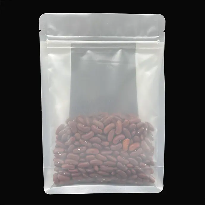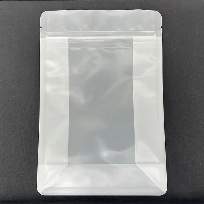 5.875" (w) x 8.625" (h) x 2.75" (d) OD Matte Transparent Square Bottom (8 Side Seal) Bag with ZipSeal 1" (25mm) from Top and Tear Notch