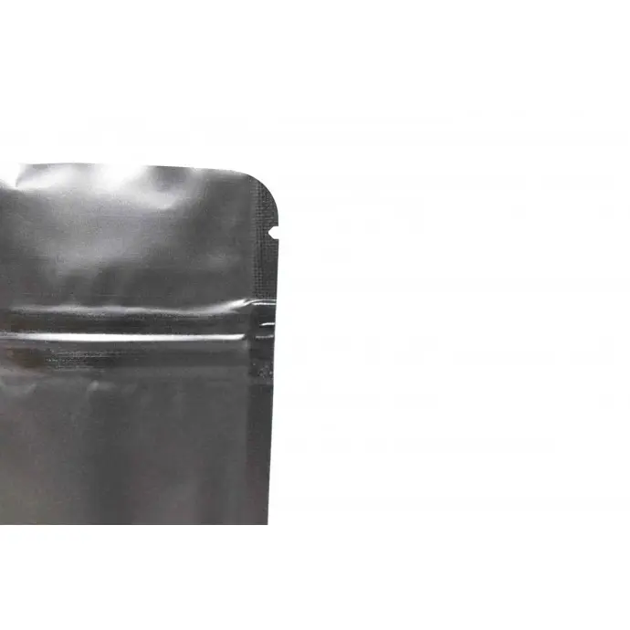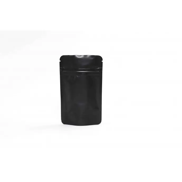 3.125" x 5.0" x 2.0" OD Matte Black MylarFoil Stand Up Pouch with Zipseal, Tear Notch, and Rounded Corners