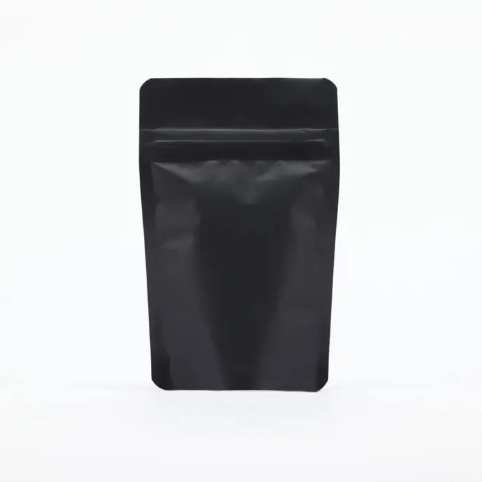 3.125" x 5" x 2" O.D Black Soft Touch Stand Up pouch with ZipSeal, rounded corners, and NO TEAR NOTCH