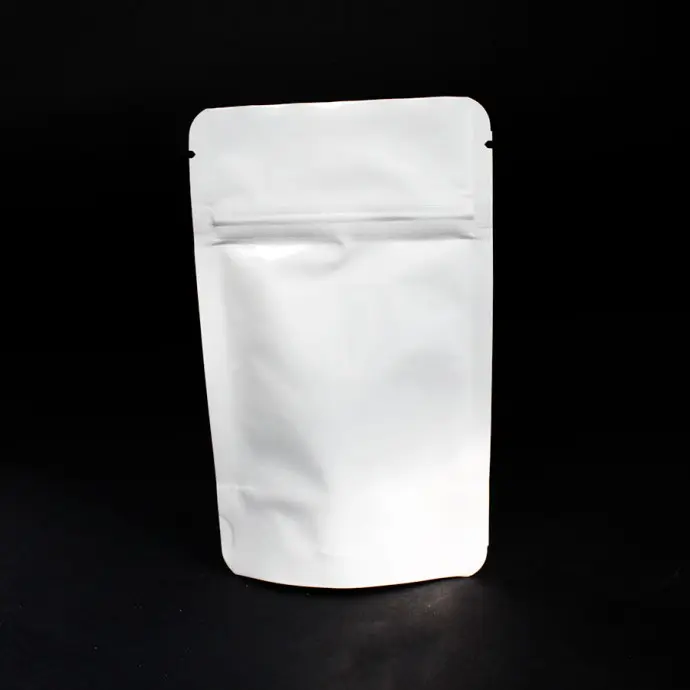 3.125" x 5.0" x 2.0" OD White MylarFoil Stand Up Pouch with ZipSeal, Tear Notch, and Rounded Corners