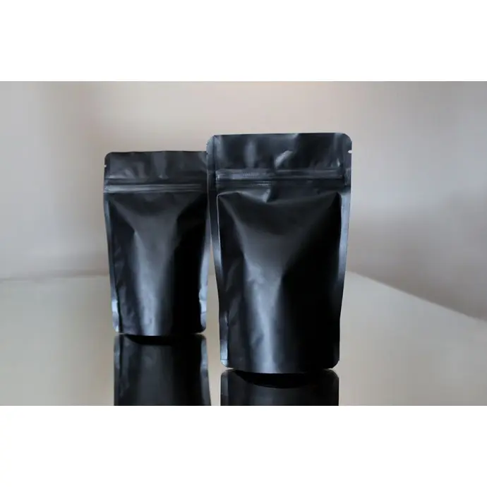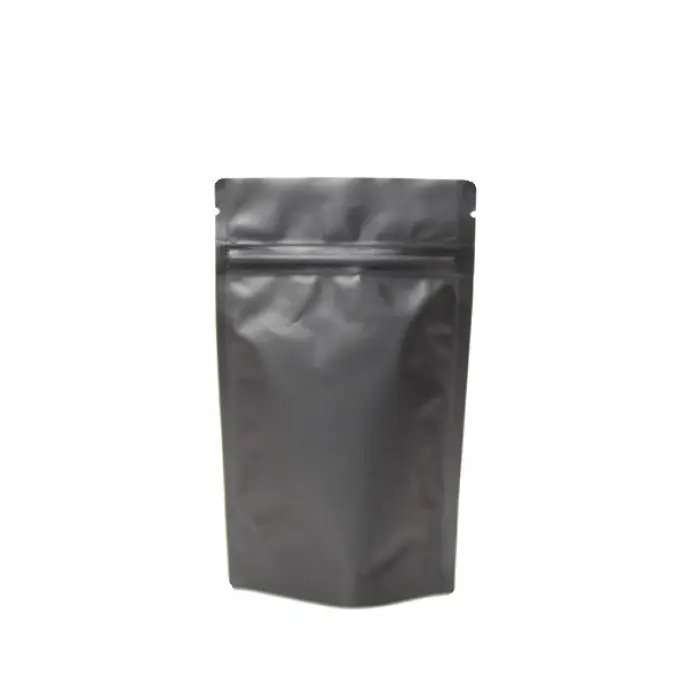 4.0" x 6.41" x 2.25" OD Matte Black Bag MylarFoil stand up pouch with ZipSeal, tear notch and rounded corners