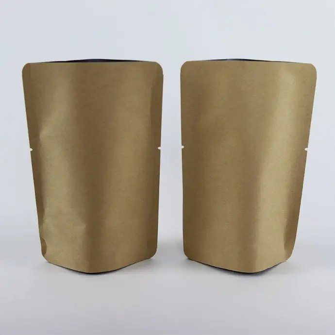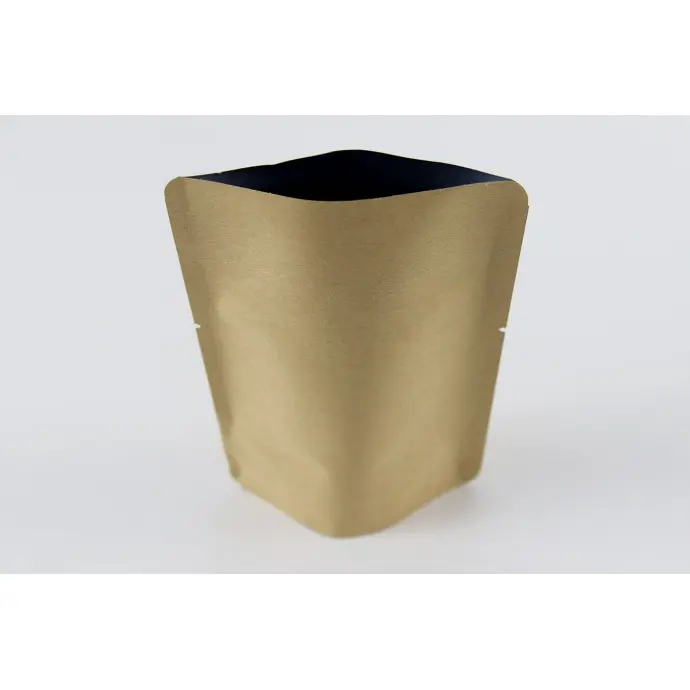4.0" x 6.0" x 2.25" O.D. Kraft MylarFoil Stand Up Pouch with Rounded Corners and Tear Notch 2.5" from top open end