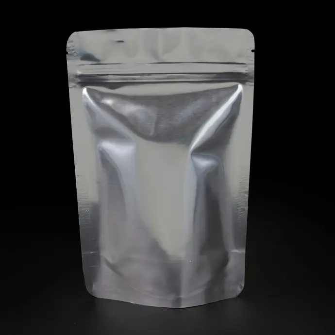 4.5" x 6.75" x 2.75" O.D. Silver Mylar Foil Stand Up Pouch with Zip Seal and Tear Notch