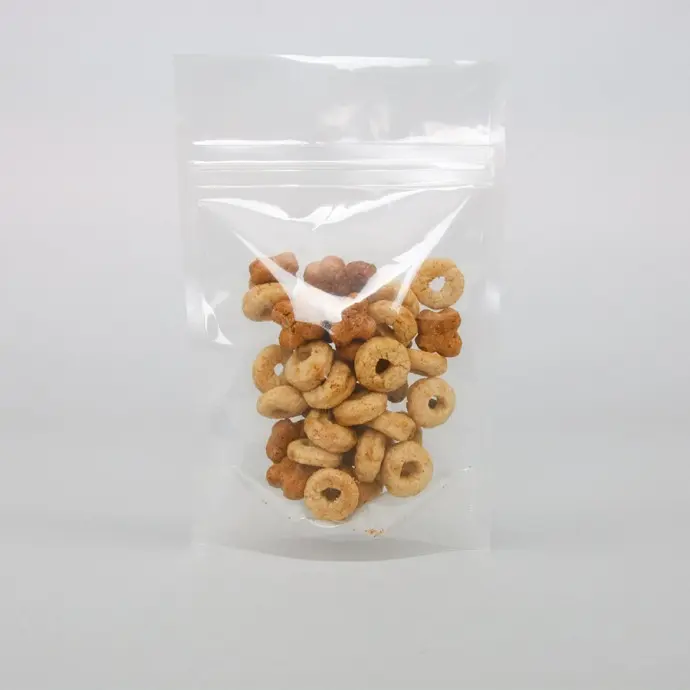 4.0" x 6.0" x 2.0" O.D. Clear PAKVAC4.7K stand up pouch with zipper and tear notch