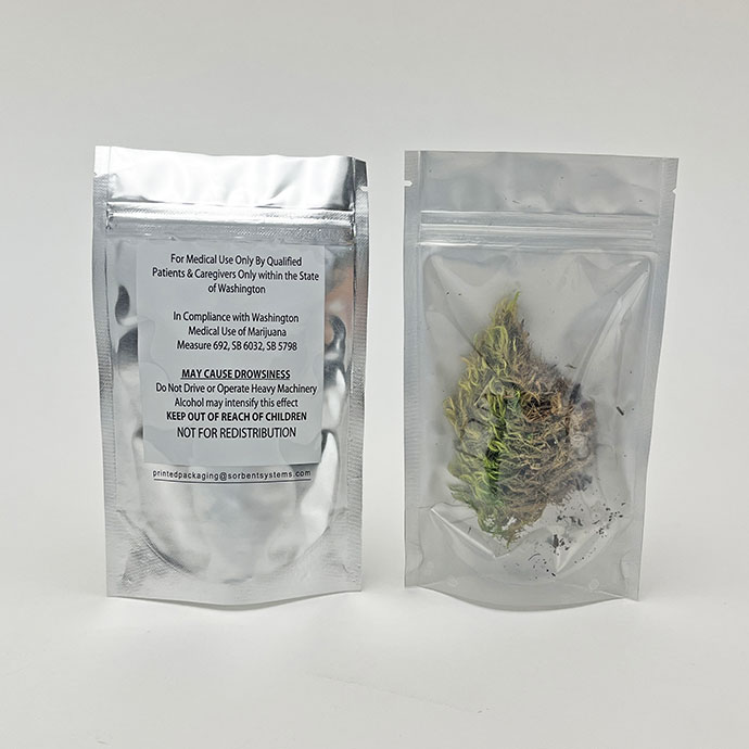 4.0" x 6.41" x 2.25" Clear/Silver 420 MI Pouch open on the ZipSeal end with tear notch