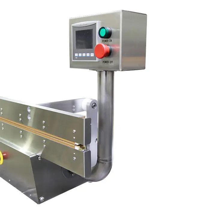 Building off experience with the popular Gramatech Workhorse, we are always working with our partners to find improvements or solutions for updates to our machines. In the case of one partner that wanted better access to machine controls during productrion, we worked to develop a side mounted touchcreen controller to move from what could be a work area when sealing. They had been running into issues where the packaging while being positioned for sealing, would fall and block the control system beneith the seal area. To combat this we took the hardward and built a custom side enclosure to keep controls easy to access during use. Updates like these allow us to try out new ideas and find great solutions to future design decisions.