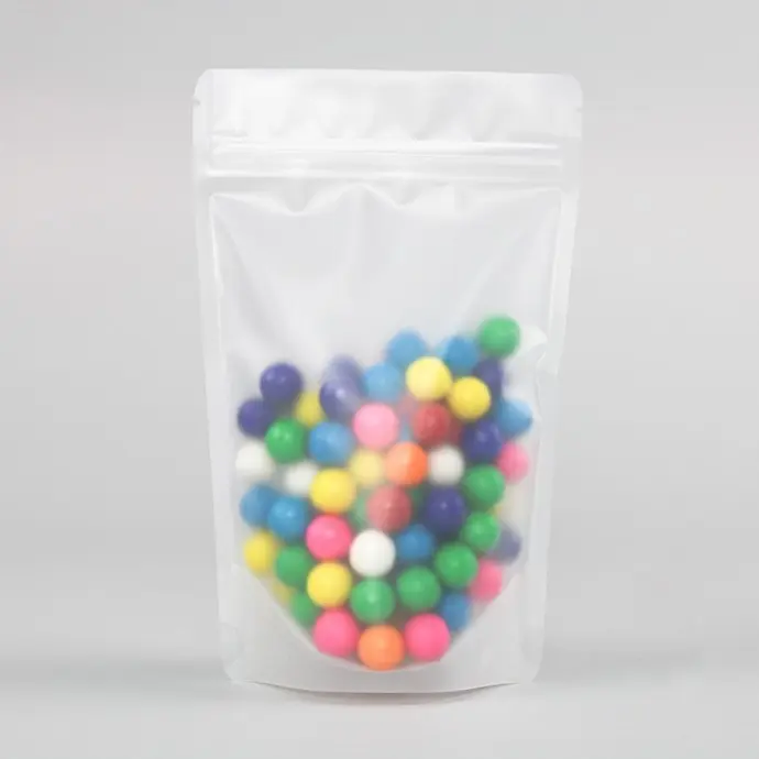 5" x 8" x 3" OD Clear Matte Frosted Stand Up Pouch with Zipper and Tear Notch (1,000/case) - BMMPF03ZRC