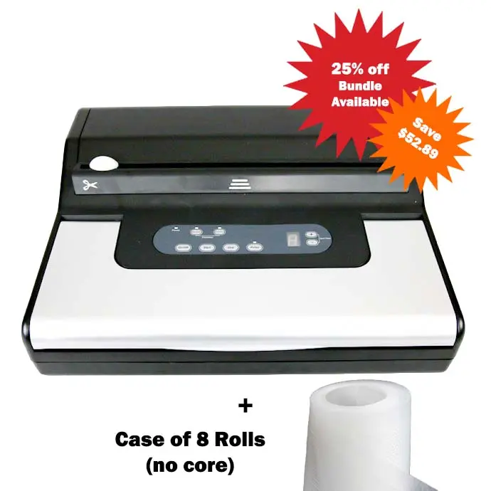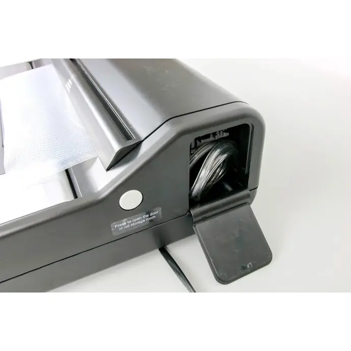 NOTE: This vacuum sealer has 2 built-in roll storage compartments for storing a small and a large roll: fits 8” x 20’ and 11” x 20’ rolls, and under. Many of our customers purchase 50’ rolls and separate them into shorter lengths to fit.