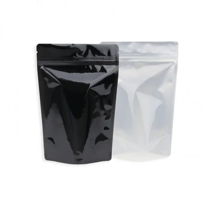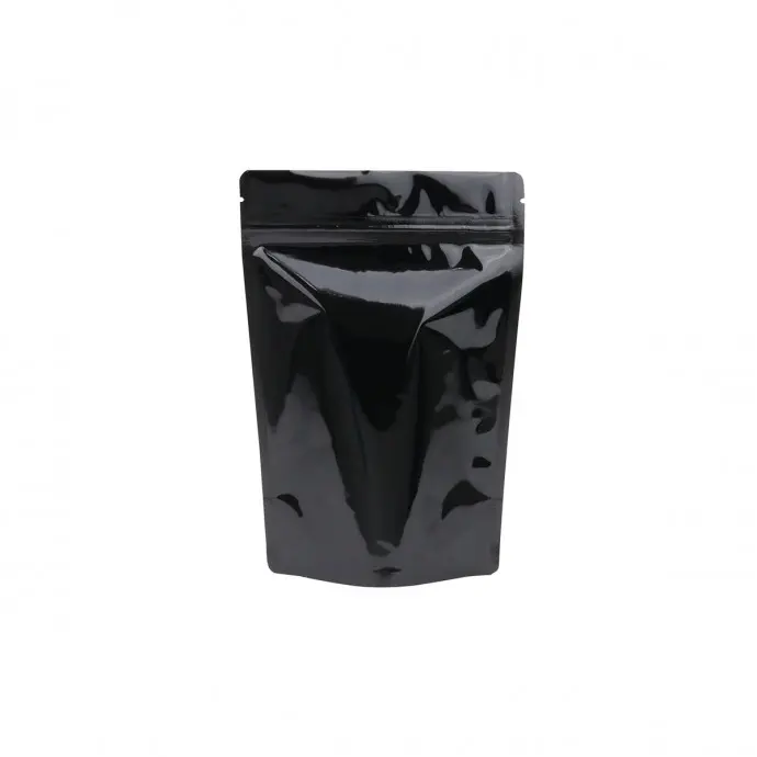 5.5" x 8.0" x 3.15 Vista/Black MylarFoil Stand Up Pouch with Zip Seal and Tear Notch