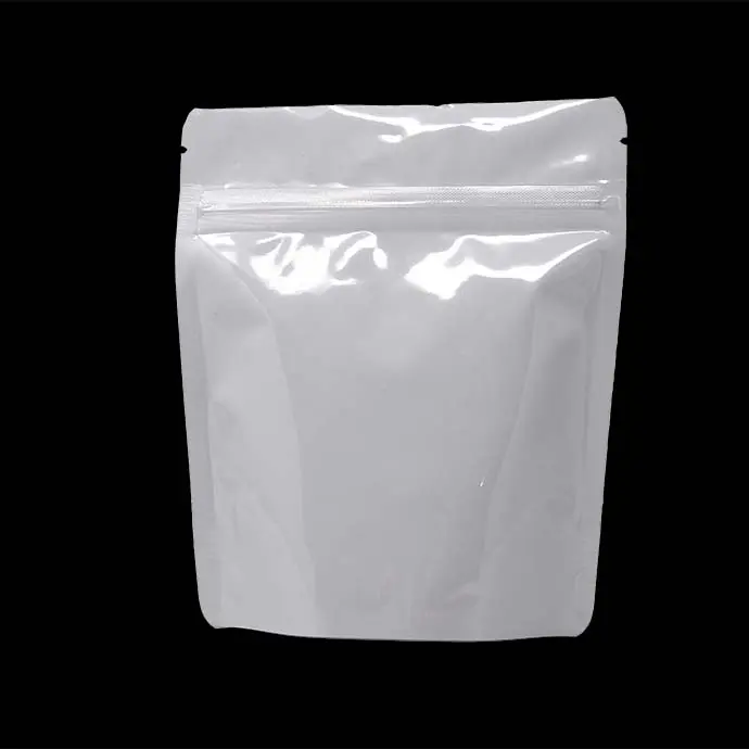 5.0" x 6.0" x 2.5" O.D. PAKVF4W White Stand up pouch with ZipSeal, tear notch, and rounded corners