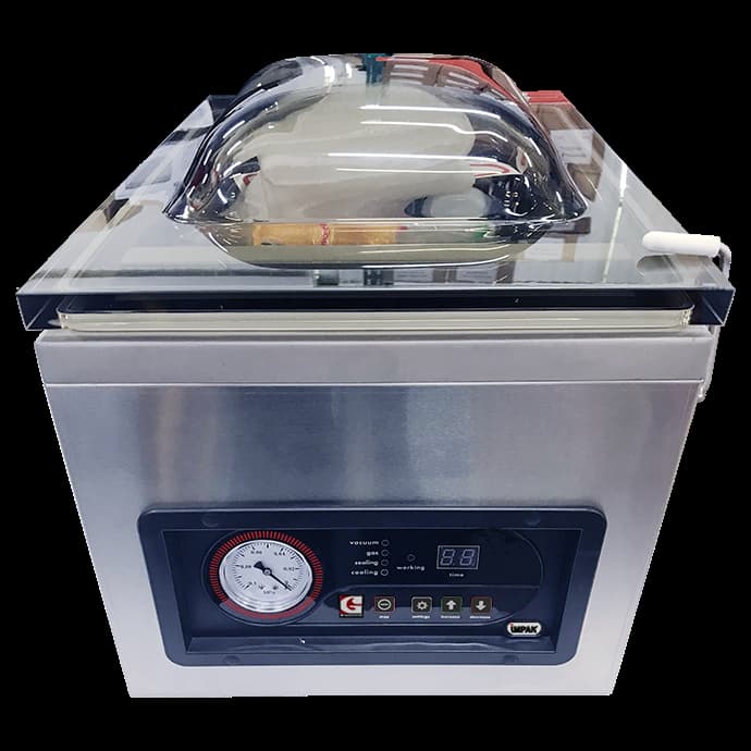 The model CHTC-110F Is the smallest of our CORE Edition Chamber Sealer bodies. Built with simple efficiency in mind, the CORE line was designed to develop a chamber sealer body that can better fit in sall work surfaces. The CHTC-110F is not only a afforable option, but an easy to operate machine as well. The standard PD-01 control panel allows you to select the vacuum time, gas flush time (if the unit is equipped with the optional gas flush system), seal time and cooling time by simply touching either the up arrow or the down arrow and the digital readout provides total accuracy. If your application can be enhanced by using preset programs, multi-stage gas flush or soft air venting then you can upgrade a CHTC-110F to a Siemen's/Allen Bradley control panel that allow for all of these features and many more.