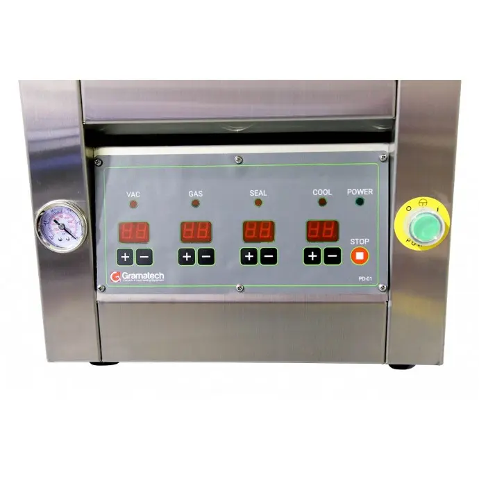 The model CHTC-280F may be the smallest of IMPAK's table top chamber vacuum sealers but it is engineered and manufactured to be an industrial quality machine. Both the housing and the vacuum cavity are constructed using all # 304 stainless steel as part of meeting the stringent NSF standards. As with all of the Impak's chamber machines the CHTC-280F also meets UL and CSA safety standards. Meeting the UL, CSA and NSF standards means these machines meet all the requirements for use in restaurants, delis, test kitchens and any other establishment that is inspected by the local or state authorities. The heart of any vacuum chamber machine is the vacuum pump and IMPAK utilizes only Busch vacuum pumps in all models including the CHTC-280F. The CHTC-280F is not only a rugged unit but an easy to operate machine as well. The standard PD-01 control panel allows you to select the vacuum time, gas flush time (if the unit is equipped with the optional gas flush system), seal time and cooling time by simply touching either the up arrow or the down arrow and the digital readout provides total accuracy. If your application can be enhanced by using preset programs, multi-stage gas flush or soft air venting then you can upgrade a CHTC-280F to the PNC-01 microprocessor control panel that allow for all of these features and many more. Learn more about the PD-01 and PNC-01 Microprocessor System.