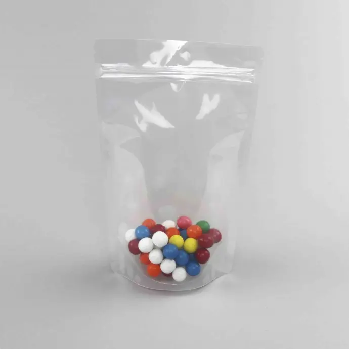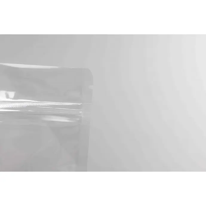 6" x 9.37" x 3.25" OD Transparent Stand Up pouch with ZipSeal, tear notch and round corners
