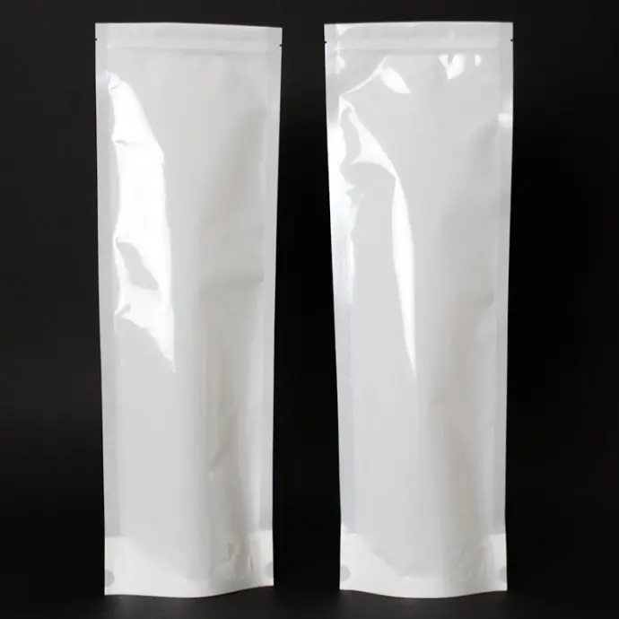 6" x 18" x 3.5" OD White MylarFoil stand up pouch with ZipSeal and tear notch