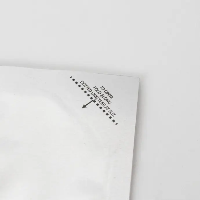These small pouches are both tamper evident and child resistant, featuring a single corner tear notch opposite the open end of the pouch. To open, users fold the corner edge over and tear along a pre-cut slit on the bag as indicated on the printed instructions on the pouch. Ideal for single-dose products and sample items that should be kept from children. The high barrier material works well for protecting products that are sensitive to moisture and oxygen.