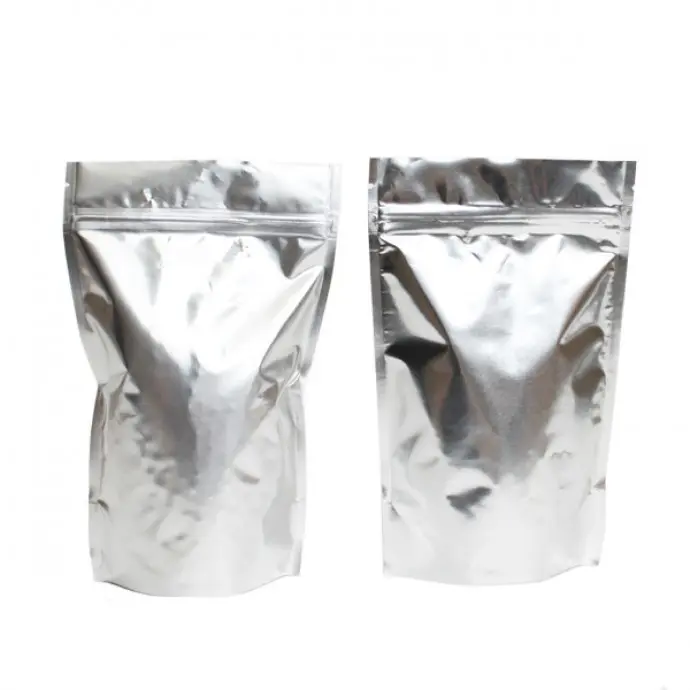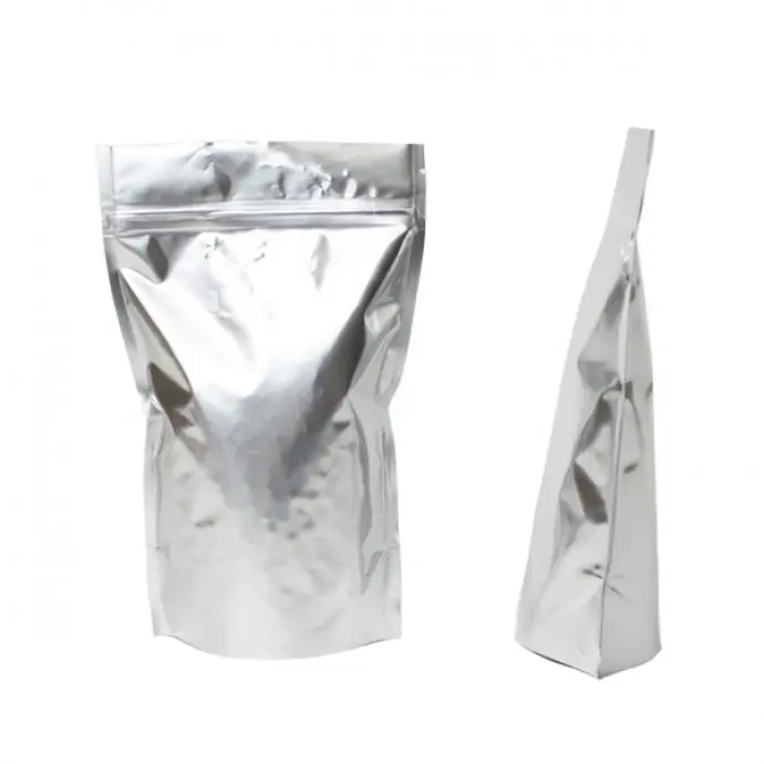 6" x 9.37" x 3.25" OD Silver MylarFoil Stand Up pouch with ZipSeal and tear notch