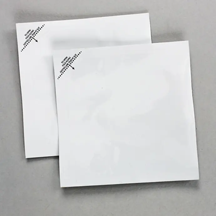 These small pouches are both tamper evident and child resistant, featuring a single corner tear notch opposite the open end of the pouch. To open, users fold the corner edge over and tear along a pre-cut slit on the bag as indicated on the printed instructions on the pouch. Ideal for single-dose products and sample items that should be kept from children. The high barrier material works well for protecting products that are sensitive to moisture and oxygen.