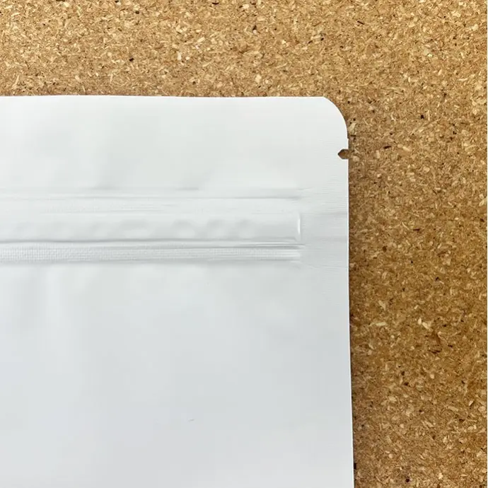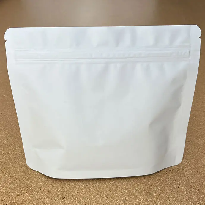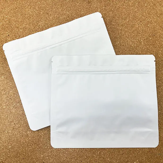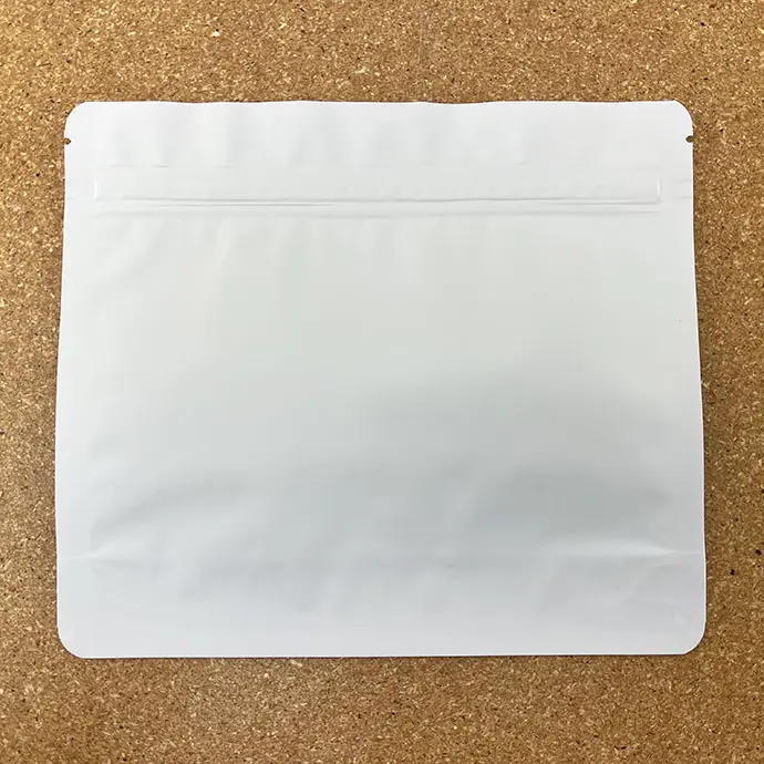 8.0" x 7.0" x 2.5" O.D. White Stand Up Pouch with Hook2Hook™ Zipper, Tear Notch, and Rounded Corners