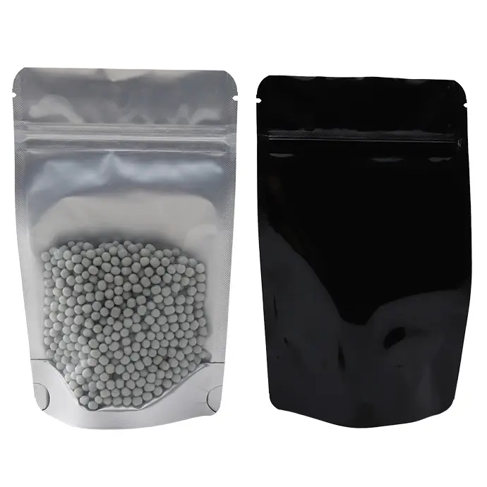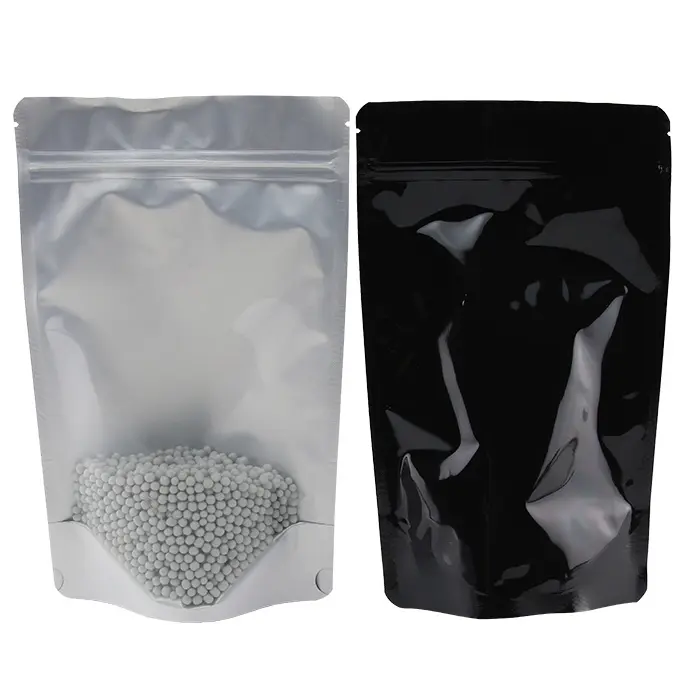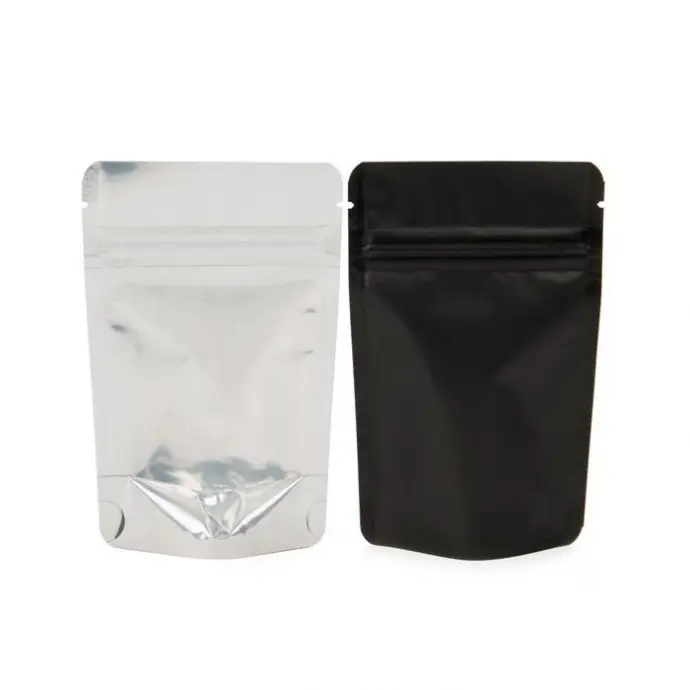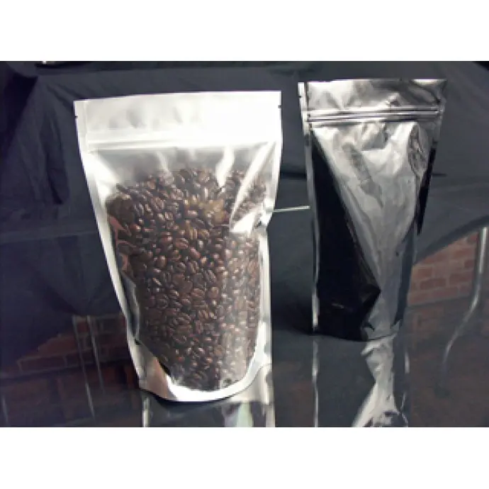6" x 9.37" x 3.25" OD Clear/Black MylarFoil stand up pouch with ZipSeal, Tear Notch, and Rounded Corners