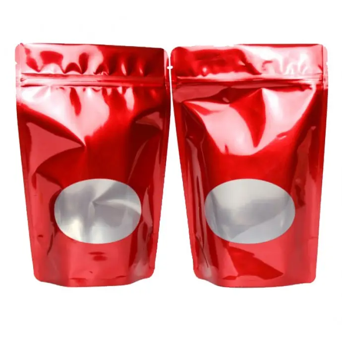 5.75" x 9" x 3.5" Red Stand Up Pouch with Oval Window (1,000/case) - DMCNS35ZRCRD