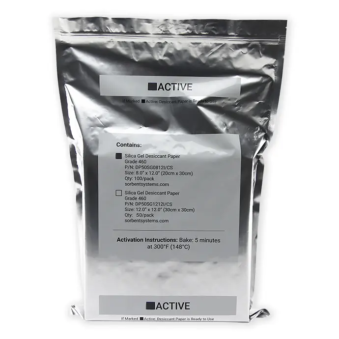 8” x 12” 460 Grade silica gel desiccant paper;