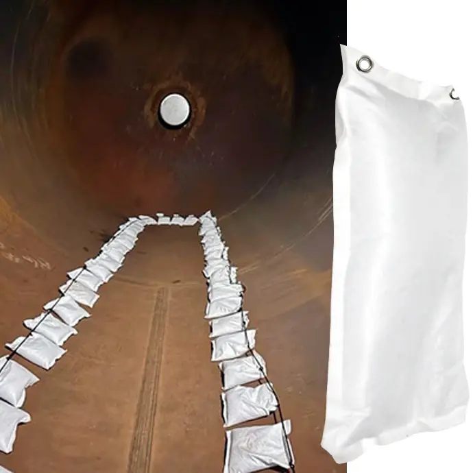 One recent customer had a series of very large metal containers used intermittently they needed to store. To make sure they were maintained in the off season, they wanted a no hassle solution to keep humidity and condensation inside to a minimum. After consulting with them and finding all the measurements, we manufactured a new style of desiccant pouch with eyelets to tie together with a rope. By making bundles of the large packets on a line, we could deliver the optimal desiccant amount for the space (no measurements by workers on the floor), and make even distribution easy.