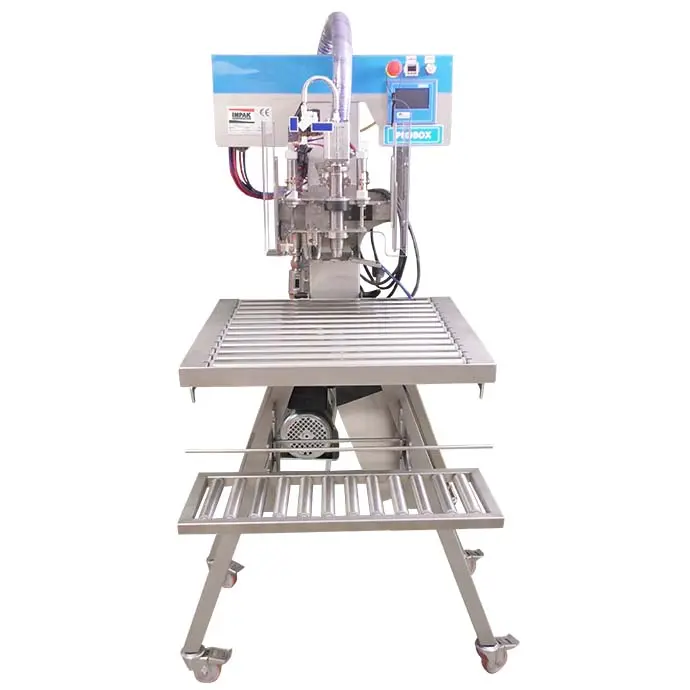 The FILL-N-CAP by IMPAK Corporation is a 316L stainless steel BIB / Barrel Pouch filling machine with efficiency and easy of use in mind. This semi-automatic filler fills from 1.5L up to 20L of product, and is compatible with a wide range of caps, taps and valves. The system automatically removes and recaps the pouch during filling, and includes nitrogen injection and air vacuum system capabilities.