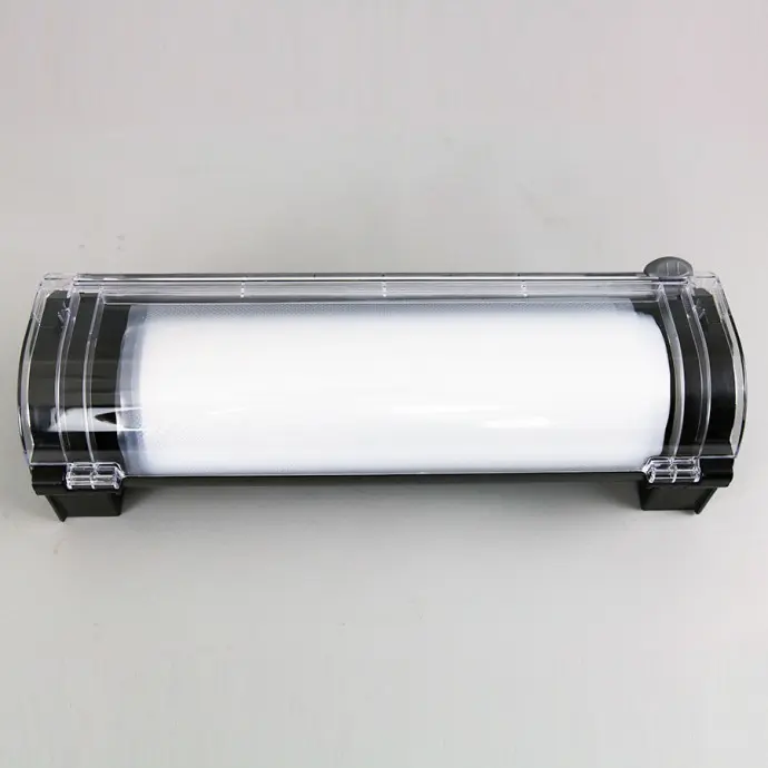 Create custom sized vacuum bags with this 16” roll dispenser with cutter. Store 16 inch wide rolls up to 50 feet long. Designed as a standalone bag cutter, or attached to KeepFresh-EC CounterMate Pro XL16; two small latches on the roll dispenser slide into slots on the back of the sealer.