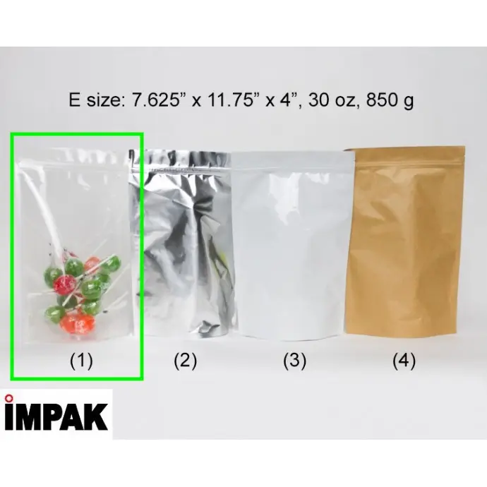7.625" x 11.75" x 4" OD Transparent Stand Up pouch with ZipSeal, tear notch and rounded corners