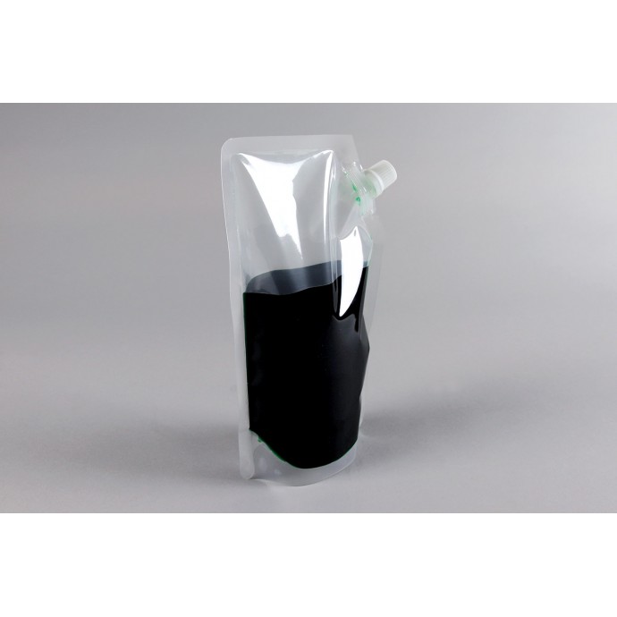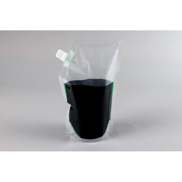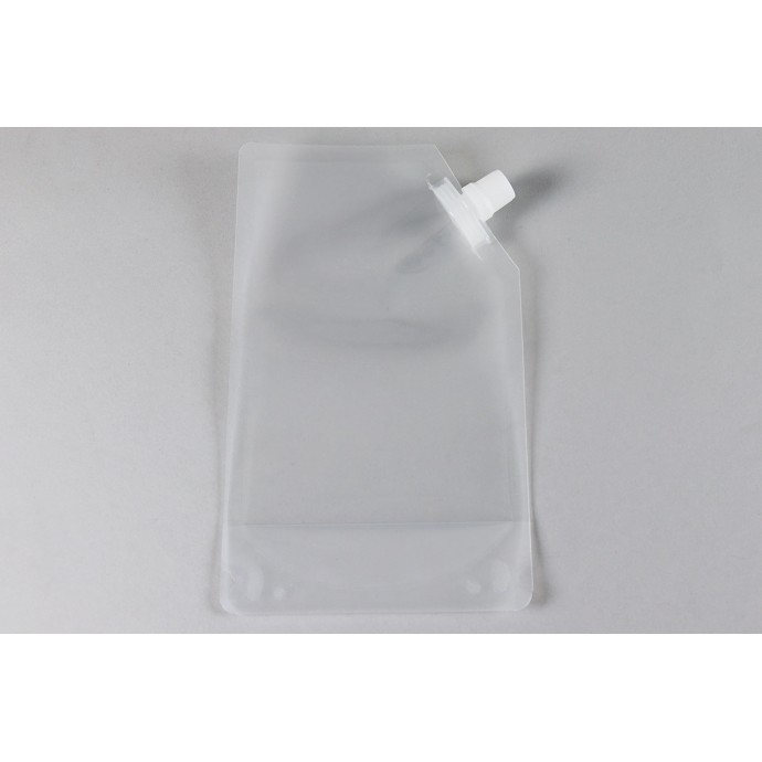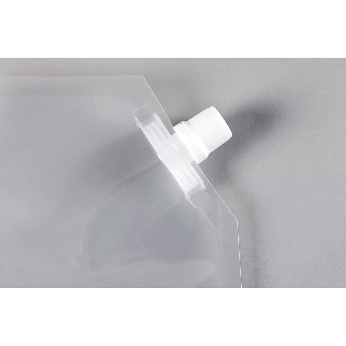 This transparent tamper-evident spout pouch is FDA approved food safe and great for packaging liquids that have visual appeal.