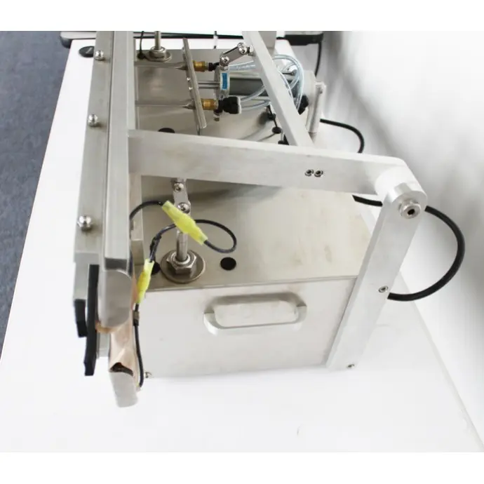 The stainless steel shelf and product stop mounts to the GST-801 and allows the operator to place the bag on top with product stop to prevent it from sliding down and hold the bag taut while the seal jaws come together.